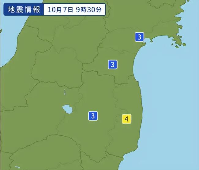 当地时间7日9时30分许,日本福岛县近海发生4.9级地震,震源深度为50千米。福岛县沿海地带多地感受到明显震感,震度达到4级。福岛第一核电站位于该地区,目前暂无受损的相关报道。福岛县中部及宫城县多地也有震度为3级的震感